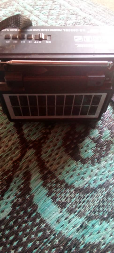 una radio con pannello solare e una lampadina con cavo USB
